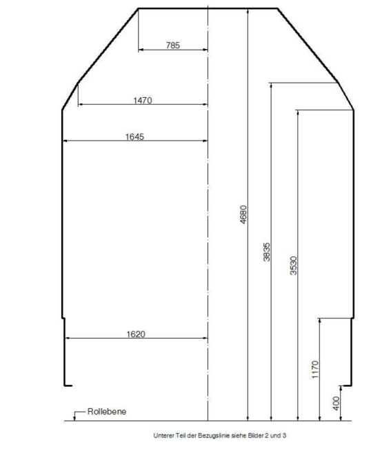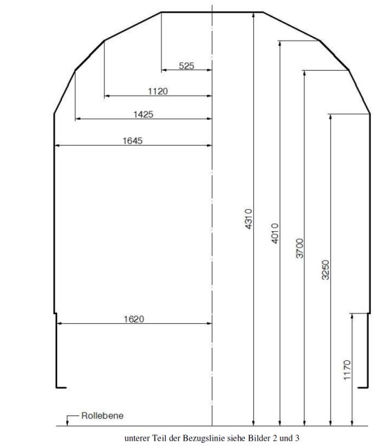 Bild 2: Unterer Teil der Bezugslinie für Schienenfahrzeuge, die Gleisbremsen in Bremsstellung oder sonstige aktivierte Verschub- oder Abbremsvorrichtungen befahren dürfen.