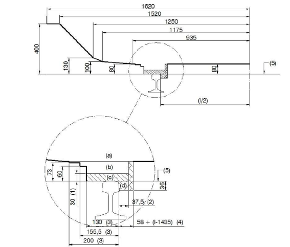 (d) Bereich für Räder und für Bauteile, die mit der Schiene in Kontakt kommen