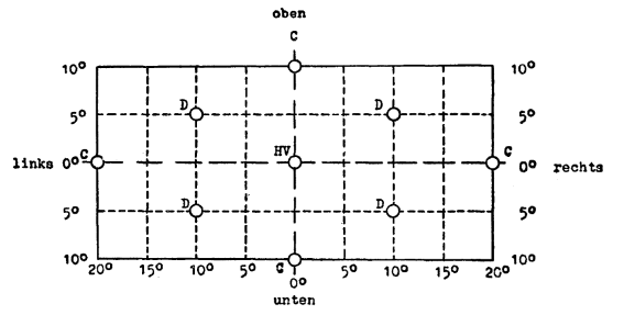 3. c) in den Leuchtrichtungen, die bei Verlegung der Hauptleuchtrichtung („HV“) in die Schnittlinie der Vertikalebene mit der Horizontalebene mit der Vertikalebene einen Winkel von ±10° und mit der Horizontalebene einen Winkel von ±5° bilden und in dem nachstehenden Richtungsdiagramm mit dem Buchstaben „D“ bezeichnet sind.