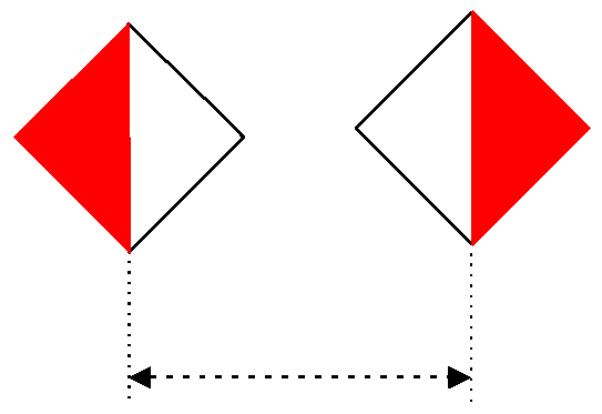 | Werden zwei Tafelzeichen, zwei Lichter oder zwei Flaggen übereinander gezeigt, bedeutet dies ein länger dauerndes Verbot | ||||||||||||||