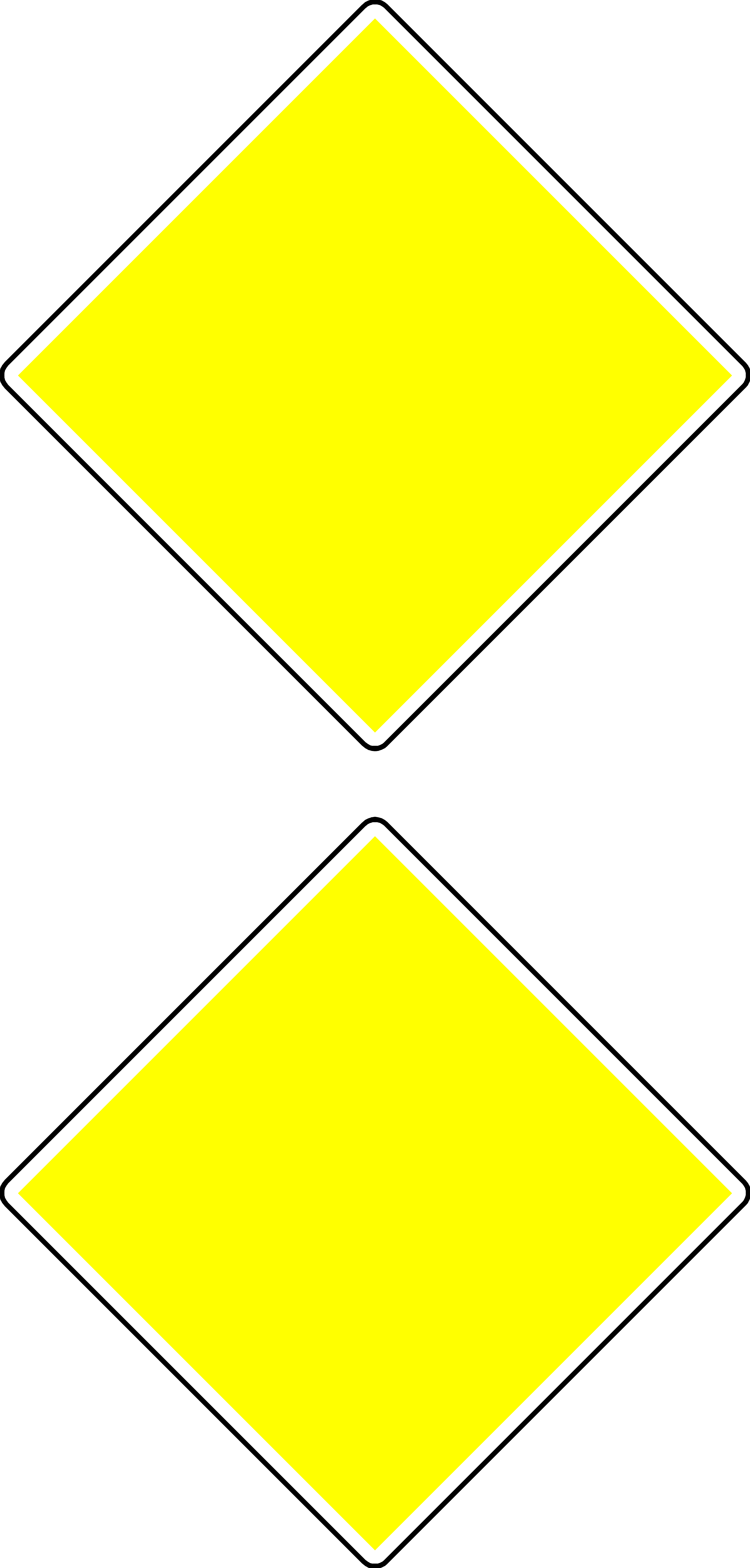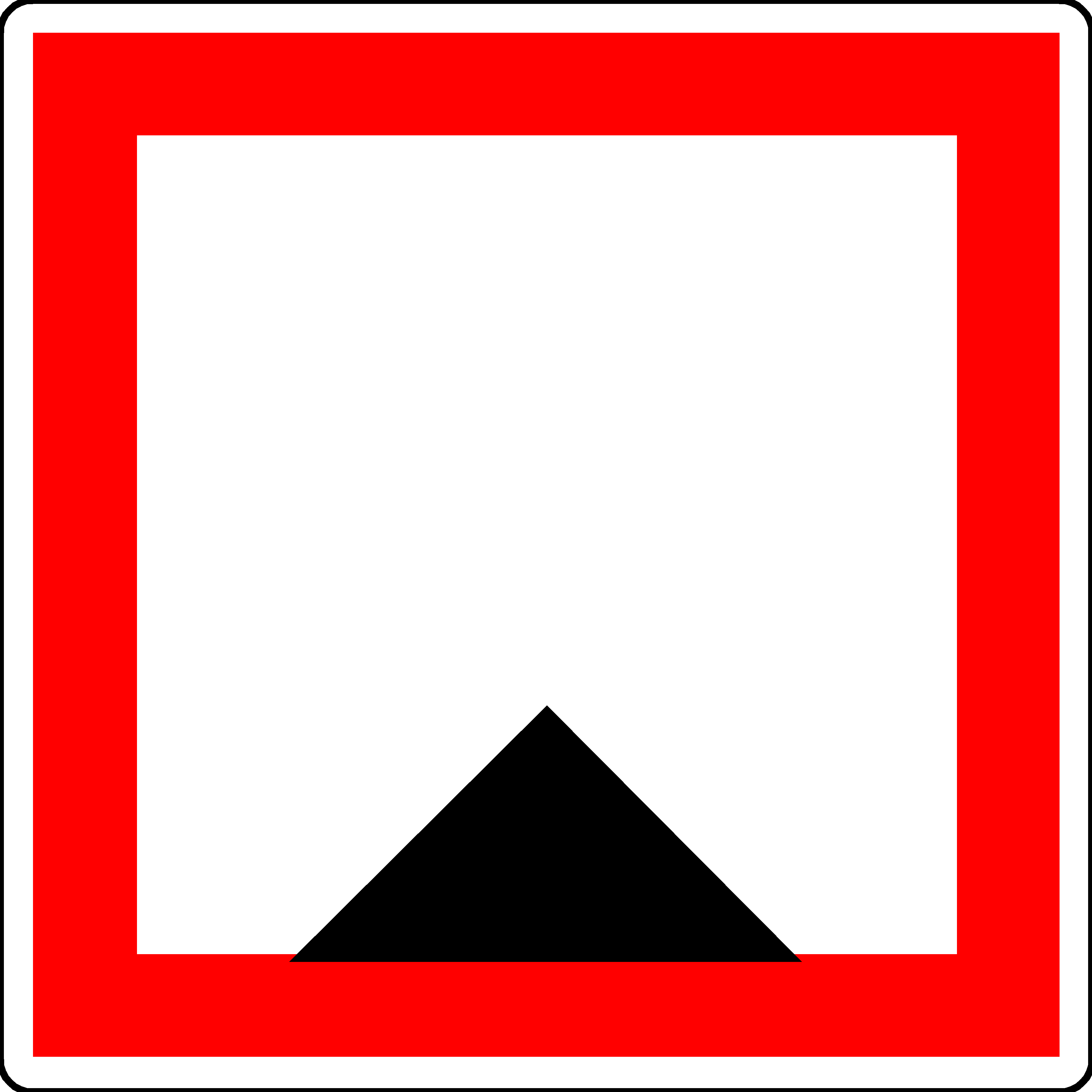 | Hinweis: | Die dreieckigen Tafeln müssen nicht unbedingt weiß sein und können neben oder unter dem Hauptzeichen angebracht sein. | |