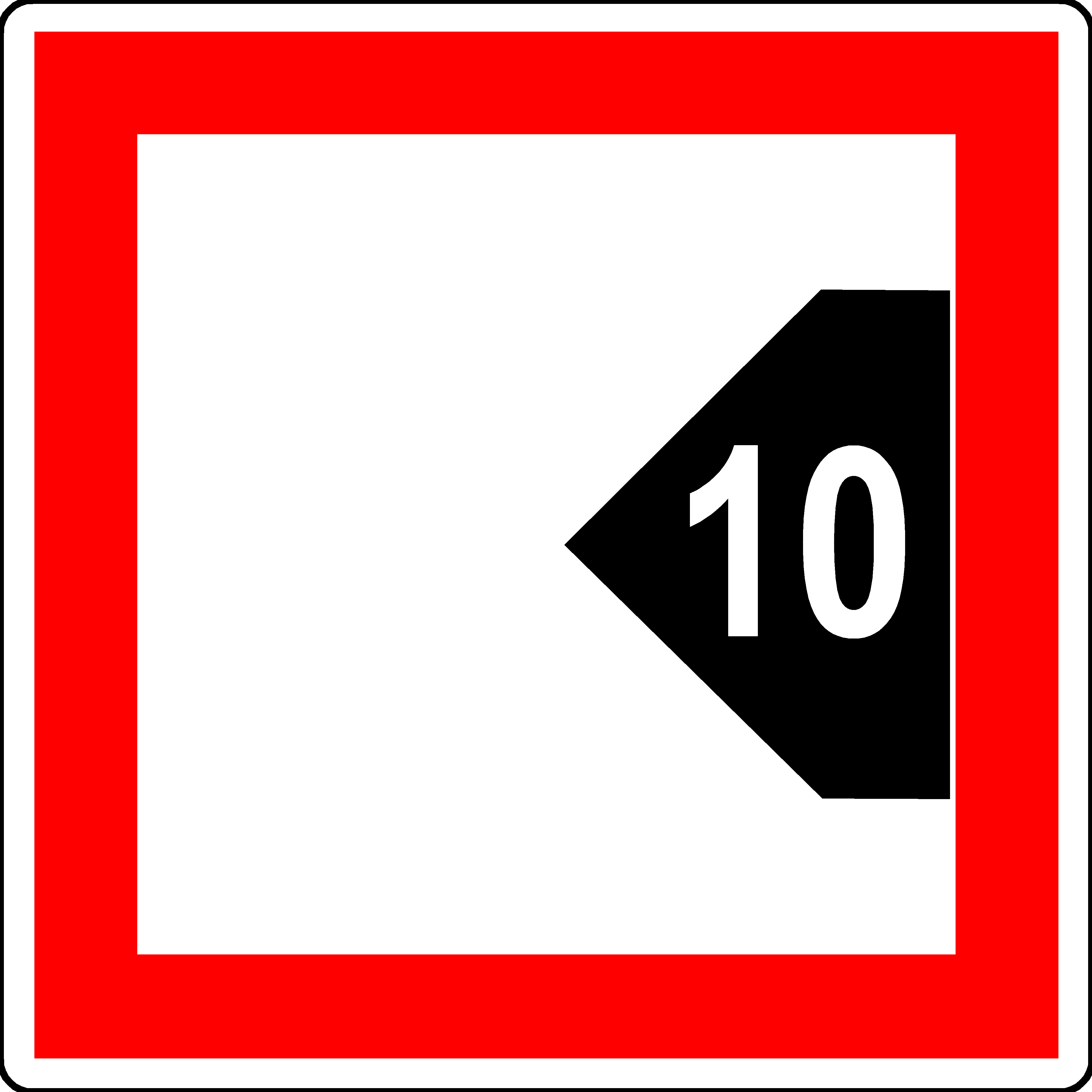 1. | Rechteckige Tafeln, die die Entfernung bis zu dem Ort angeben, an dem die Bestimmung gilt oder sich die Besonderheit befindet, die durch das Hauptzeichen angegeben ist | ||