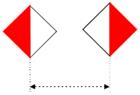 | Werden zwei Tafelzeichen, zwei Lichter oder zwei Flaggen übereinander gezeigt, bedeutet dies ein länger dauerndes Verbot | ||||||||||||||