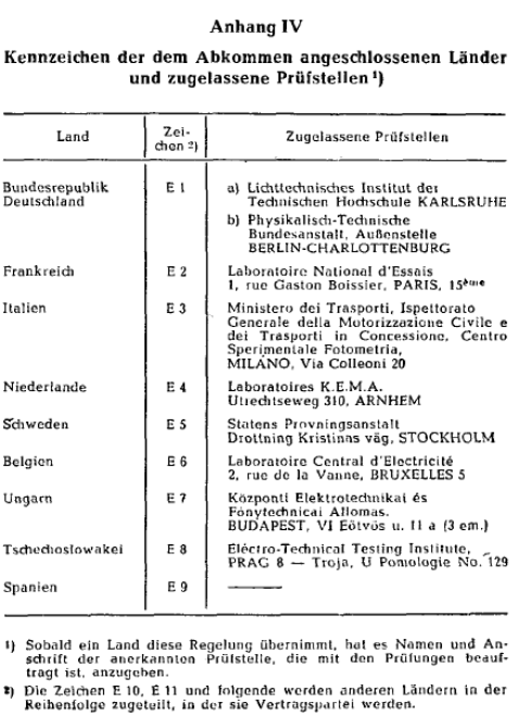 Anlage 3 Übereinkommen über die Annahme einheitlicher Bedingungen für die Genehmigung der Ausrüstungsgegenstände und Teile von Kraftfahrzeugen und über die gegenseitige Anerkennung der Genehmigung – Regelungen Nr. 1 – 8, 19 und 20