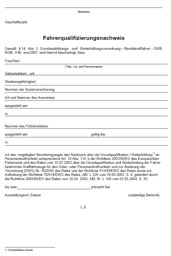 Fahrerqualifizierungsnachweis gemäß § 14 Abs. 3 GWB