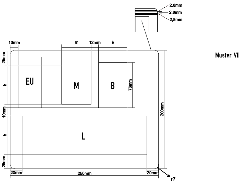 1. nach Muster VIII oder Kennzeichentafel mit Probefahrtkennzeichen für Motorräder im Format wie Muster VIII 13,00 €