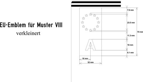 EU | I, III, VII, VIII | EU-Emblem, (siehe Muster EU) | |