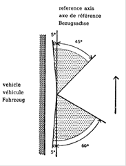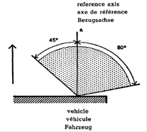 - *) Die in den Zeichnungen angegebenen Winkel entsprechen Geräten. die auf der rechten Seite des Fahrzeuges angebracht werden. Die Pfeile in diesen Skizzen zeigen nach vorn.