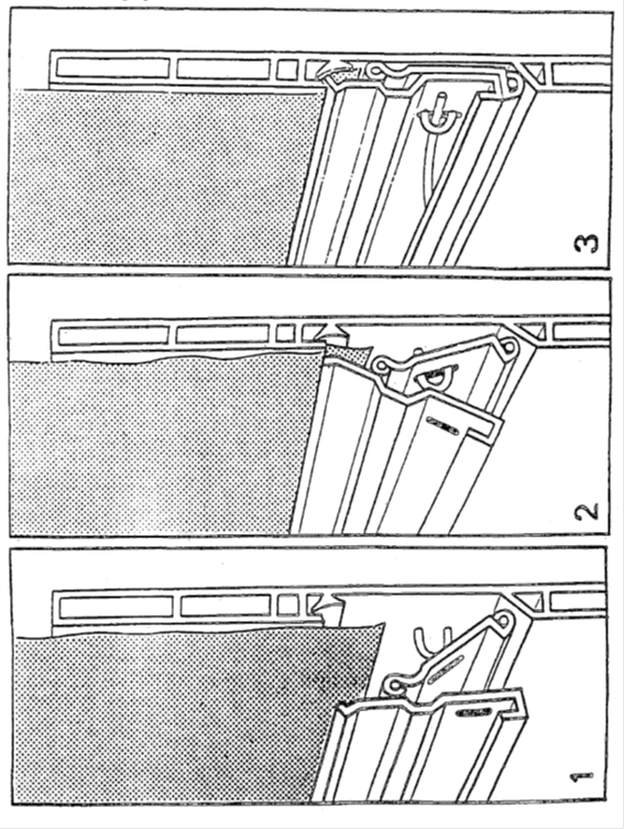 Diese Art der Befestigung der Schutzdecke am Fahrzeug kann zugelassen werden, wenn die Ringe im Profil vertieft sind und über die Tiefe des Profils nicht vorstehen. Die Breite des Profils soll so schmal wie möglich sein.