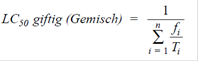 - Ti = Giftigkeitskennzahl des iten Bestandteils des Gemisches (der Ti-Wert entspricht dem LC50-Wert, soweit dieser zur Verfügung steht).