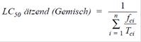 - Tci = Giftigkeitskennzahl des iten ätzenden Bestandteiles des Gemisches (der Tci-Wert entspricht LC50-Wert, soweit dieser zur Verfügung steht).
