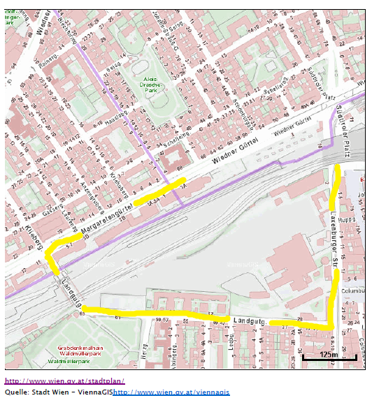 Der Magistrat der Stadt Wien stellte am 15. 5. 2013 die Lage des Abstellplatzes fest:
