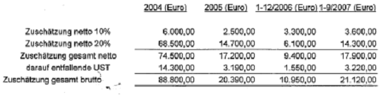 mit den von der Betriebsprüfung angesetzten Einkäufen