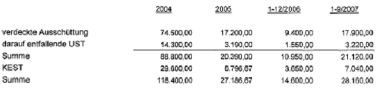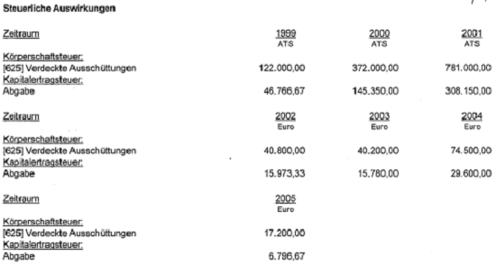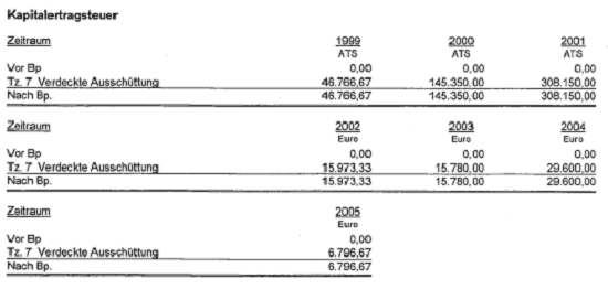 Kapitalertragsteuer - Abfuhrdifferenzen: ATS 290.175 / Euro 21.087,84
