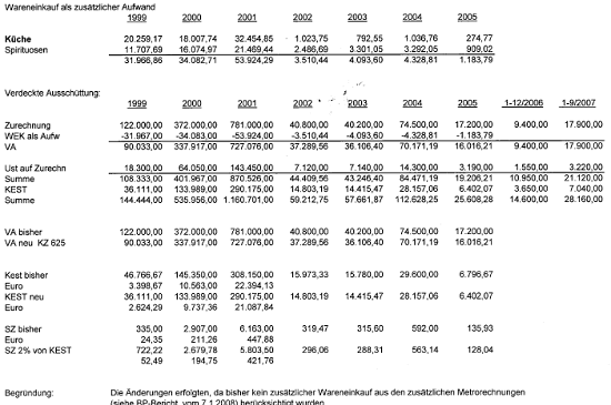 Der Einkauf außerhalb des Kundenkontos der Bf bei Metro wurde sowohl vom Geschäftsführer der Bf, B C-D, als auch von deren Koch, H I, am 29.10.2007 vor der Finanzstrafbehörde zugestanden und mit Privateinkäufen von Alkoholika des Kochs begründet.