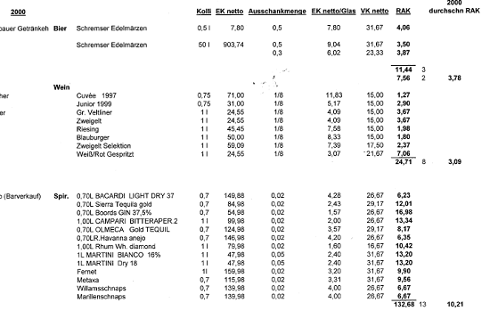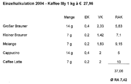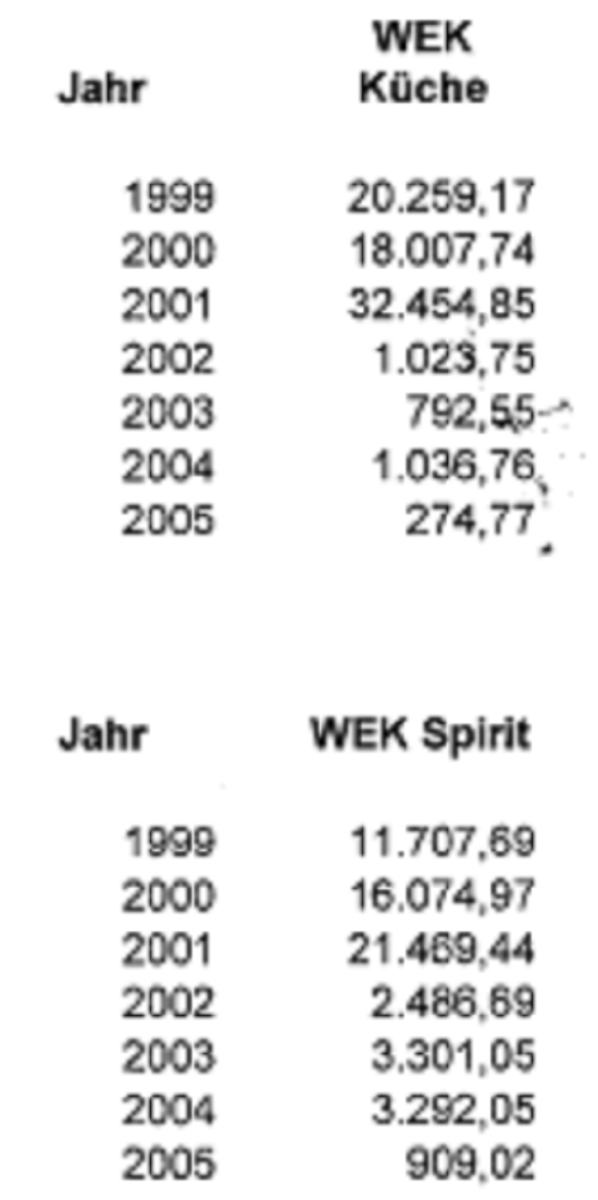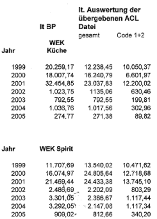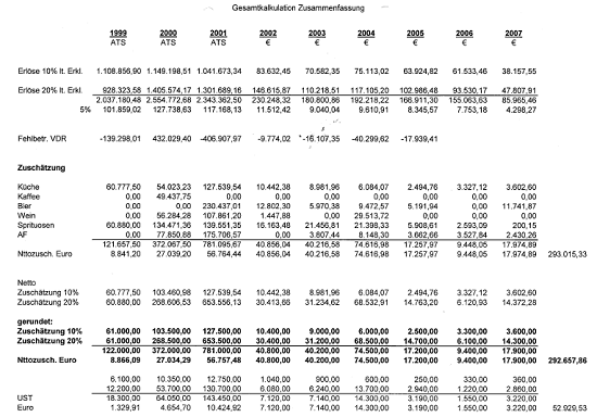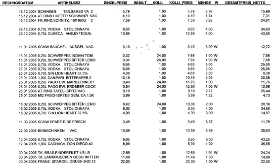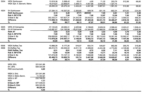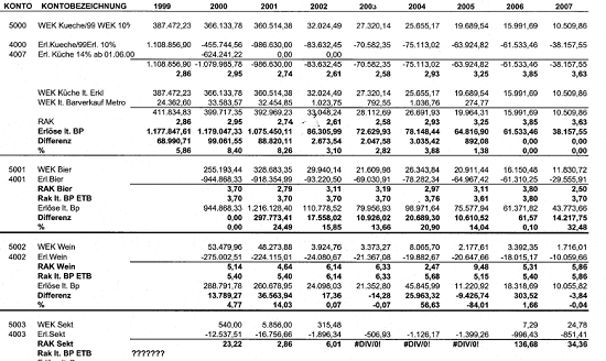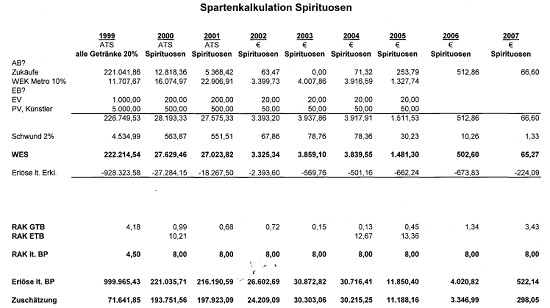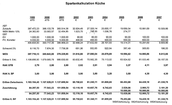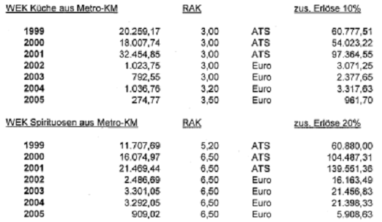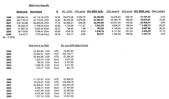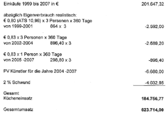 Vergleicht man die Angaben laut Berufung (offenbar strittige Gesamteinkäufe in Bezug auf die Küche)