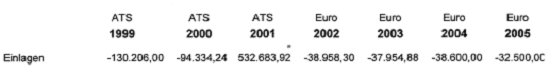 Laut Tz. 2 des Betriebsprüfungsberichtes wurden in den Jahren 1999 sowie 2002 bis 2005 vom Gesellschafter-Geschäftsführer B C-D Einlagen in das Unternehmen geleistet, deren Herkunft nicht aufgeklärt werden konnte, und zwar (Stellungnahme der Betriebsprüferin):