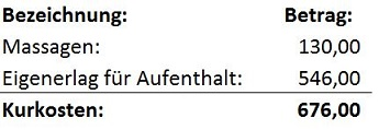 Der diesen Kurkosten zu Grunde liegende und von der Bf. zu entrichtende Eigenerlag betreffend die Aufenthaltskosten sei wie folgt ermittelt worden: