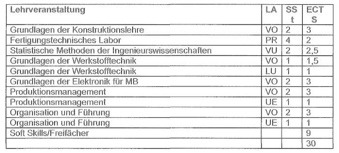 Viele Lehrveranstaltungen, die im Studienplan zum Absolvieren in höheren Semestern vorgeschlagen sind, bauen auf Inhalten aus Veranstaltungen in früheren Semestern auf. Daher kann es sein, dass zum Ablegen der Prüfung das selbstständige Erarbeiten von Teilen der Inhalte vorhergehender Veranstaltungen nötig ist (z.B. Teile von Grundlagen der Elektrotechnik für Grundlagen der Elektronik oder Grundlagen der Werkstoffwissenschaften für Grundlagen der Werkstofftechnik).