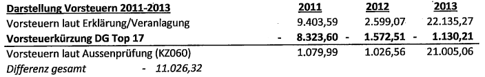Somit waren auch die Vorsteuern nicht anzuerkennen.