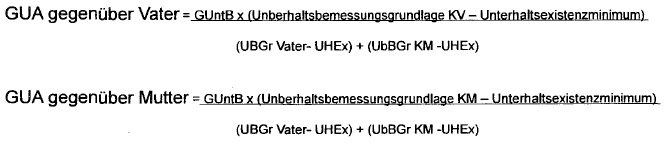 Bei einer Bemessungsgrundlage der Mutter von monatlich € 1.465,34 und des Vaters von monatlich € 4.422,— würde sich ein Anspruch von rund je € 885,- gegen dem Vater und je € 295,- gegenüber der Mutter errechnen.