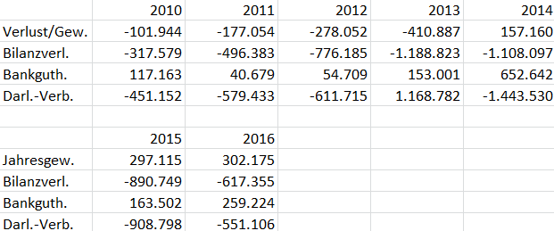 Als Vermögen kommen die Bankguthaben in Betracht, die allerdings bis einschl. 2013 - infolge beachtlicher Verluste – nicht ins Gewicht fallen. Im Jahr 2014 gibt es zwar einen kurzfristigen, überdurchschnittlichen Anstieg dieses Bankguthabens, der allerdings bereits im Folgejahr wieder das bisherige Niveau erreichte.