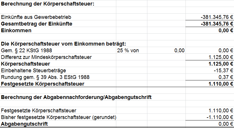 Die Körperschaftsteuer 2014 wird wie folgt berechnet: