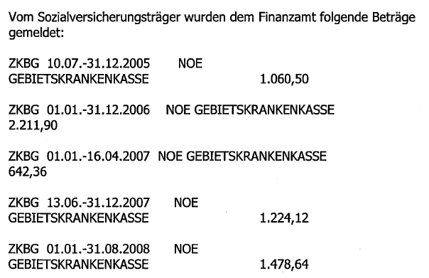 Über Anfrage des Finanzamts teilte die Wiener Gebietskrankenkasse diesem am 7.7.2016 mit: