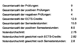 Prüfungen aus verschiedenen Studienjahren können leider nicht zusammengerechnet werden.