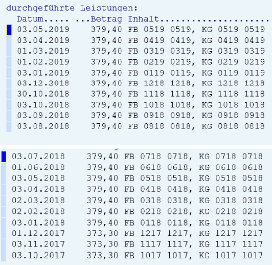Von ***1*** ***2***, SV-Nr. ***7*** wurden laut Screnshot aus dem Beihilfenprogramm FABIAN folgende Leistungen bezogen: