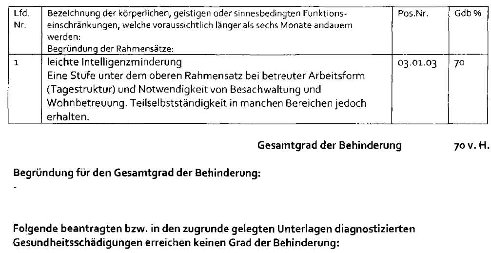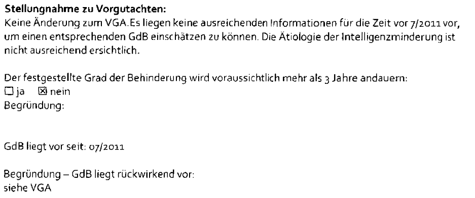 "… Aus dem Sachverständigengutachten geht allerdings hervor, dass der Grad der Behinderung von 70 % erst deshalb ab 07/2011 bestätigt werden könne, weil eine weiter zurückreichende Bestätigung aufgrund fehlender Befundvorlage nicht möglich gewesen sei.