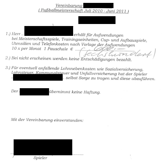 Beispiel Spielervereinbarung für die Zeiträume ab Juli 2010