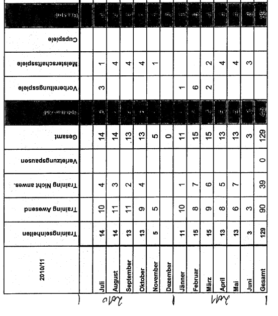 Ab Juli 2010 wurden die Aufzeichnungen am Computer geführt. Die Aufzeichnungen sind ab diesem Zeitpunkt auf den einzelnen Spieler bezogen. Aufgezeichnet wurde, wie viele Trainingseinheiten und Spiele pro Monat insgesamt stattfanden und in welchem Ausmaß der einzelne Spieler an diesen teilnahm.