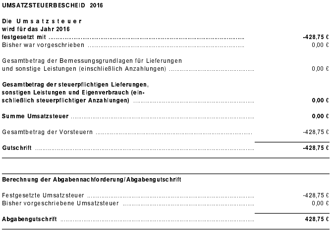 • Berücksichtigung der Vorsteuern (vor Betriebsprüfung) in Höhe von € 31.686,44.