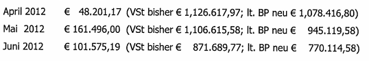 Aufgrund der obigen Ausführungen war die im nachfolgenden Schaubild dargestellte strittige Vorsteuerkürzung für die einzelnen Monate in Zahlen zu bestätigen: