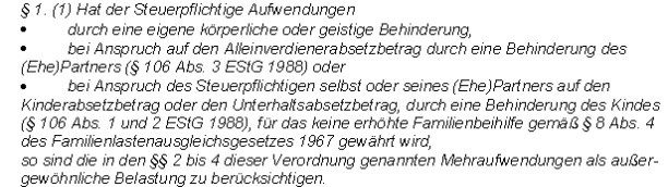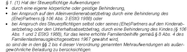 Verweise: | Außergewöhnliche Belastungen, BGBl. Nr. 303/1996 |