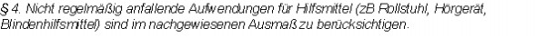 In der Verordnung über außergewöhnliche Belastungen wird der in § 4 verwendete Begriff "Hilfsmittel" nicht definiert; es werden darin nur Rollstuhl, Hörgerät und Blindenhilfsmittel als Beispiele für derartige Hilfsmittel aufgezählt.