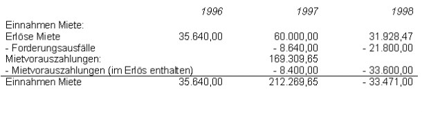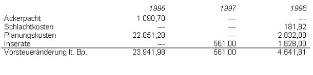 Die Vorsteuern der Jahre 1996 - 1989 waren wie folgt zu berichtigen: