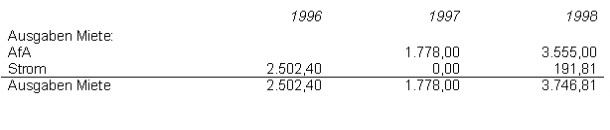 - IdF ist dieser Nachweis nicht erforderlich, da Strom, Grundsteuer, Versicherung und Steuerberatung iZm der Vermietung und Verpachtung stehenden Ausgaben sein können und nach der aus den Veranlagungsakten und aus dem Berufungsakt des Unabhängigen Finanzsenates sich ergebenden Sachlage nichts dagegen spricht, dass die Ausgaben für Strom, Grundsteuer, Versicherung und Steuerberatung Ausgaben zur Erwerbung, Sicherung oder Erhaltung der Einnahmen aus Vermietung und Verpachtung gewesen sind.