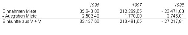 Für die Vermietung B habe ich ebenfalls Bilanzen und Gewinn- und Verlustrechnungen erstellt, welche dieser Berufung beiliegen und folgende Ergebnisse zeigen: