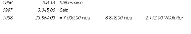 Die Richtigkeit dieser Aussage lässt sich dadurch erhärten, dass im Jahre 1996 Futtermittel in Höhe von S 208,00 und im Jahre 1997 Futtermittel in Höhe von S 3.045,00 zugekauft wurden, während im Jahre 1998, für welches eine Zuschätzung nicht vorgenommen wurde, Futtermittel iHv S 23.664,00 zugekauft werden mussten.