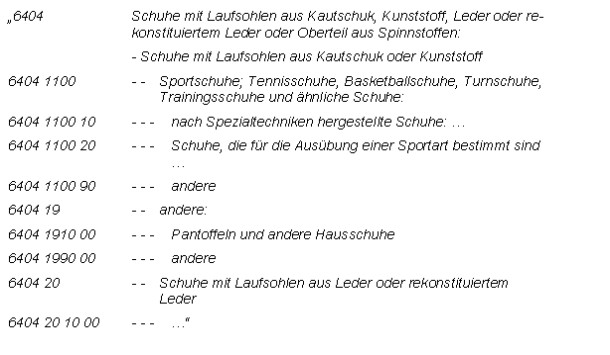 Schlagworte: | Einreihung in den Zolltarif, Vertrauensschutz, Obermaterial, Futterstoff |