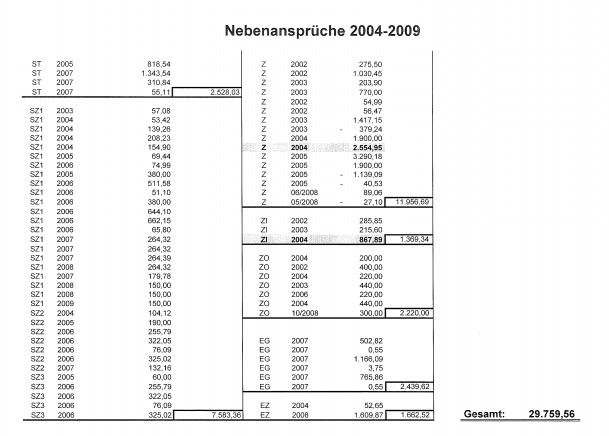 Man könne gar nicht abstreiten, dass die Bw. in der Vergangenheit, vielleicht 10 Jahre oder möglicherweise länger, in eigenen Angelegenheiten nachlässig war. Vom steuerlichen Vertreter der Bw. wurde ergänzend ausgeführt, dass die Bw. in den Jahren 2004 bis 2009 Nebenansprüche in Höhe von fast 30.000,00 € entrichtet hat. Folgende Aufstellung über die festgesetzten Nebenansprüche 2004 bis 2009 wurde vorgelegt: