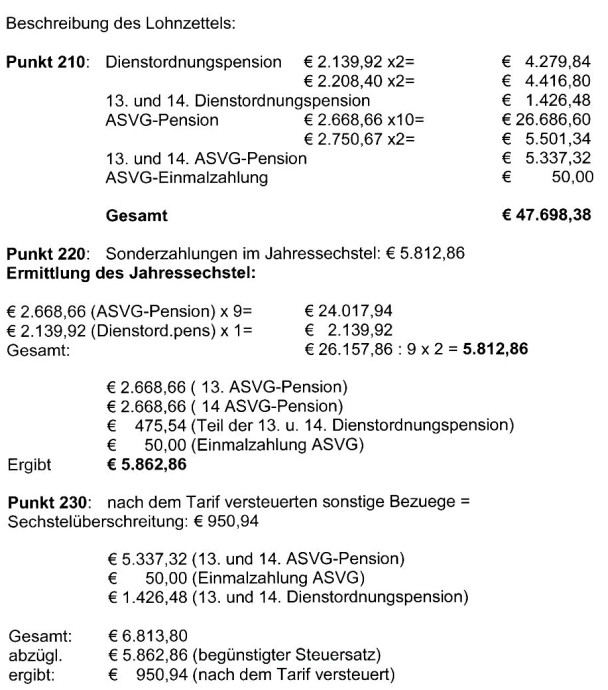 Der Verwaltungsgerichtshof interpretiert diese Gesetzesbestimmung so, dass das Jahressechstel von der bezugsausstellenden Stelle immer von den gesamten im Kalenderjahr bereits zugeflossenen laufenden Bezüge zu berechnen ist. Dabei sind die im Kalenderjahr zugeflossenen laufenden Bezüge durch die Anzahl der bereits abgelaufenen Kalendermonate zu teilen. Aus diesem Betrag ist das Jahressechstel zu ermitteln (VwGH 4.8.2004, 2001/08/0154; 10.4.1997, 94/15/0197; sh. auch Jakom/Lenneis EStG, 2009, §67 Rz 6).