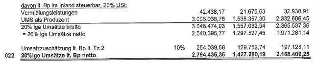 Dem wird von der BP entgegengehalten, dass die Zuschätzung nicht zur Gänze mit 20% versteuert wurde. Die Zuschätzung wurde entsprechend der Aufteilung der Umsätze durch die BP versteuert.