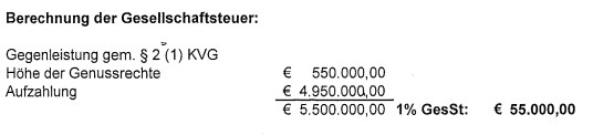 Im gegenständlichen Fall erwarb die T-GmbH Genussrechte an der Bw. im Nominale von 550.00,00 €, wodurch ein kapitalverkehrsteuerpflichtiger Vorgang iSd § 2 Z. 1 KVG verwirklicht wurde.