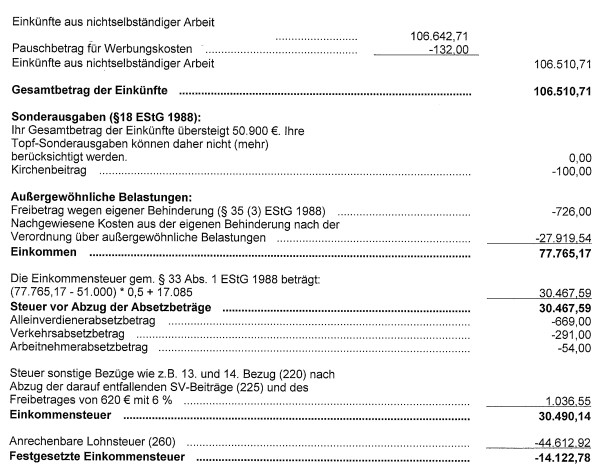 2005 | Einkommen | 77.765,17 € | Einkommensteuer | 30.490,14 € |
