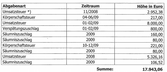 Hinsichtlich der Umsatzsteuer 11/2008 wurde darauf hingewiesen, dass diese selbst berechnet wurde. Zu den übrigen Abgaben wurden Grundlagenbescheide dem angefochtenen Bescheid beigelegt.