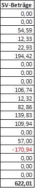 Der dermaßen neu ermittelte Sachbezug wurde seitens der Österreichischen Gesundheitskasse in einem zweiten Schritt in die für jedes Kalenderjahr der durchgeführten GPLA angefertigte Berechnungsblatt „Aufstellung_NV_[Jahr]_ohne NOVA“ übernommen (nämlich jeweils in die Spalte mit der Bezeichnung „SB neu lt. Aufstellung DG“). Ausgehend davon ergab sich ein Jahresbetrag an Sachbezug, der dem seitens der beschwerdeführenden Gesellschaft tatsächlich verrechneten Sachbezug gegenübergestellt wurde. Sofern sich bei dieser Gegenüberstellung ein Überhang ergab und die Höchstbeitragsgrundlage noch nicht ausgeschöpft war (diesfalls ergab sich trotz eines allenfalls höheren Sachbezuges keine Nachverrechnung, da die Höchstbeitragsgrundlage nicht überschritten werden durfte), wurde der sich ergebende Saldo in das Berechnungsblatt „Arbeitsmappe_neu_ohne NOVA“ übernommen und dort mit dem kumulierten Beitragssatz multipliziert. Das Ergebnis wurde unter Punkt 1.7. festgestellt. Aufgrund der Außerachtlassung der NoVA ergaben sich unterschiedlich hohe Veränderungen der Beitragsschuld je einzelnem Mitarbeiter, da der NoVA-Satz je verwendetem Fahrzeug unterschiedlich war (zwischen 1% und 21%) und die Bediensteten ihre Fahrzeuge auch unterjährig tauschten. In einzelnen Fällen einer nicht durchgehenden Nutzung eines Vorführfahrzeugen zur privaten Nutzung bzw. einem hohen NoVA-Satz ergab die durchgeführte Nachverrechnung sogar eine Gutschrift für die beschwerdeführende Gesellschaft, die bei der Ermittlung der Gesamtsumme zu berücksichtigen war. Dass einzelne Rechenoperationen der Österreichischen Gesundheitskasse ziffernmäßig nicht richtig durchgeführt wurden, wurde seitens der beschwerdeführenden Gesellschaft – wie bereits mehrmals angesprochen – nicht aufgezeigt. Der Vollständigkeit halber ist festzuhalten, dass die von der Österreichischen Gesundheitskasse ohne dahingehenden Auftrag durchgeführten Rechenoperationen der Spalten 2 und 5 des Berechnungsblattes „Arbeitsmappe_neu_ohne NOVA“ nicht in die Feststellungen übernommen wurden, zumal die Parteien des Beschwerdeverfahrens dazu kein Vorbringen erstattet habe und diesen Berechnungen auch kein Auftrag des Bundesverwaltungsgerichtes zugrunde liegt. Der Nachberechnungsbetrag von EUR 6.027,07 ergibt sich aus der Summe der der GPLA zugrundeliegenden einzelnen Kalenderjahre der unter Punkt 1.7. dargestellten Tabellen.