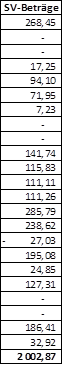 Für den Zeitraum 2014 nahm die Österreichische Gesundheitskasse folgende Berechnung der Sachbezüge vor (Spalte „Sachbezug lt. GPLA“ - Monat Jänner 2014 auszugsweise dargestellt):